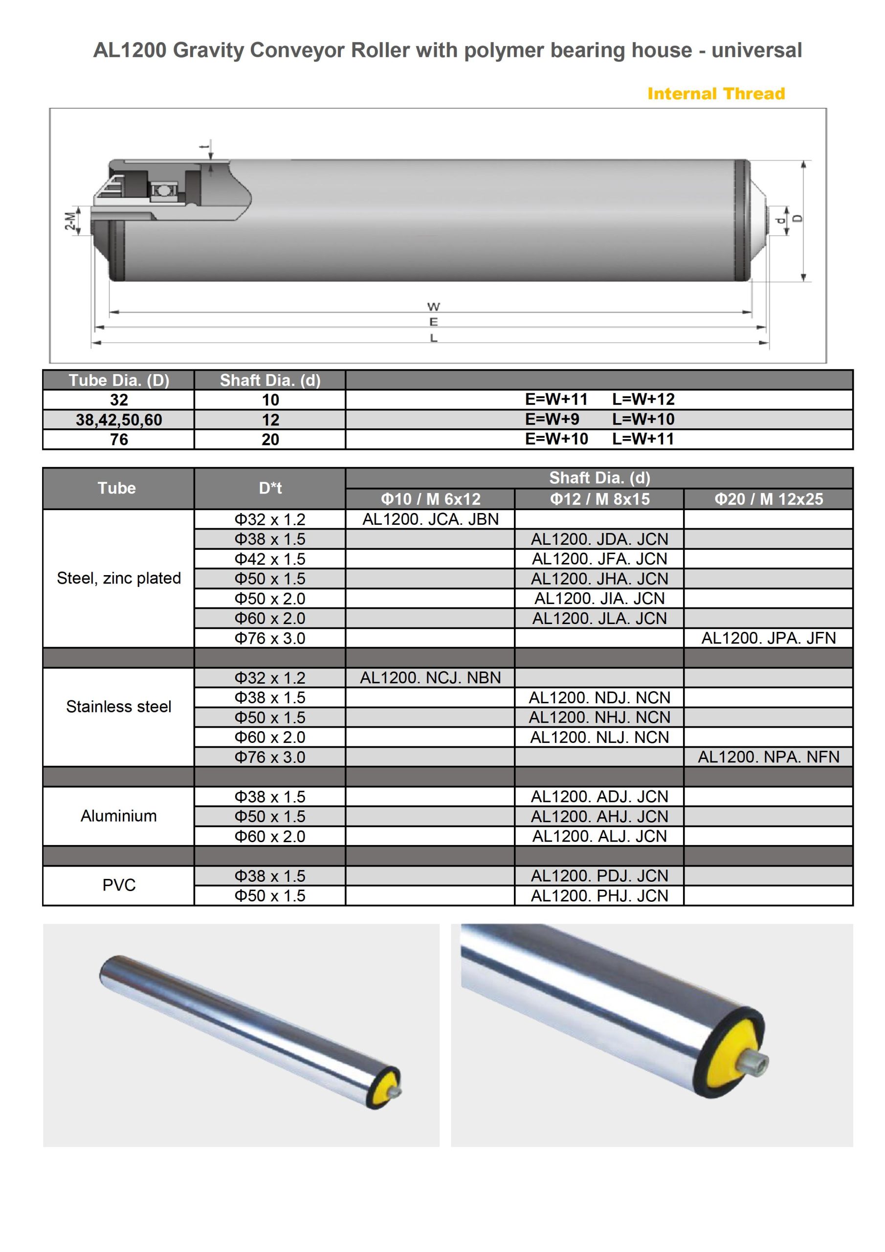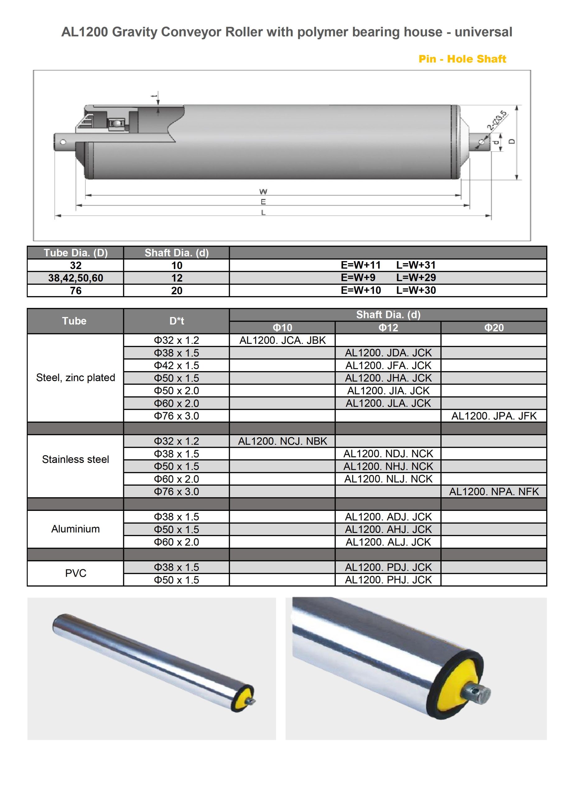 Remarks: Φ50 rollers can be equipped with PU sleeves (2mm).