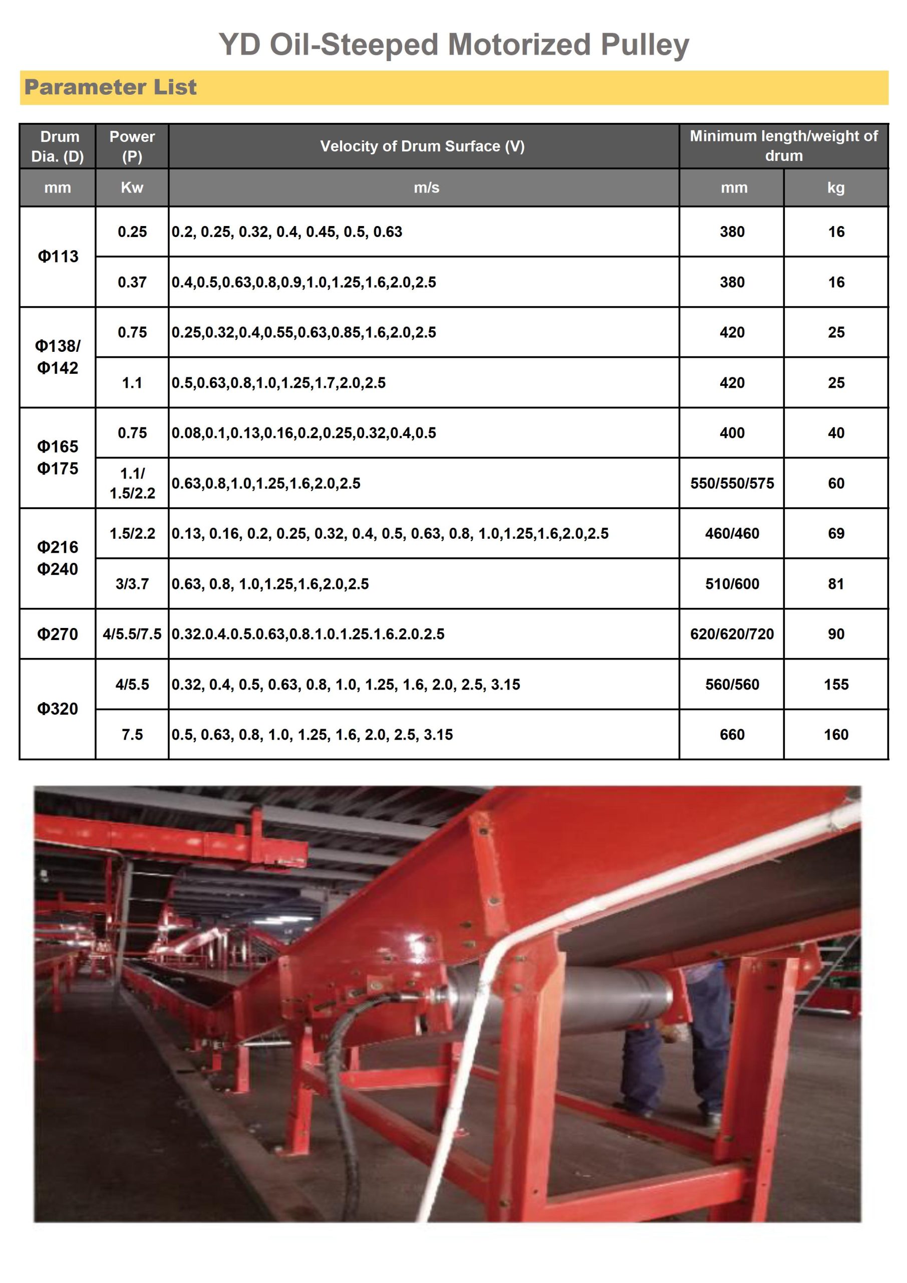 The drum motor is suitable for the light industry with an automatic assembly line or material transfer line